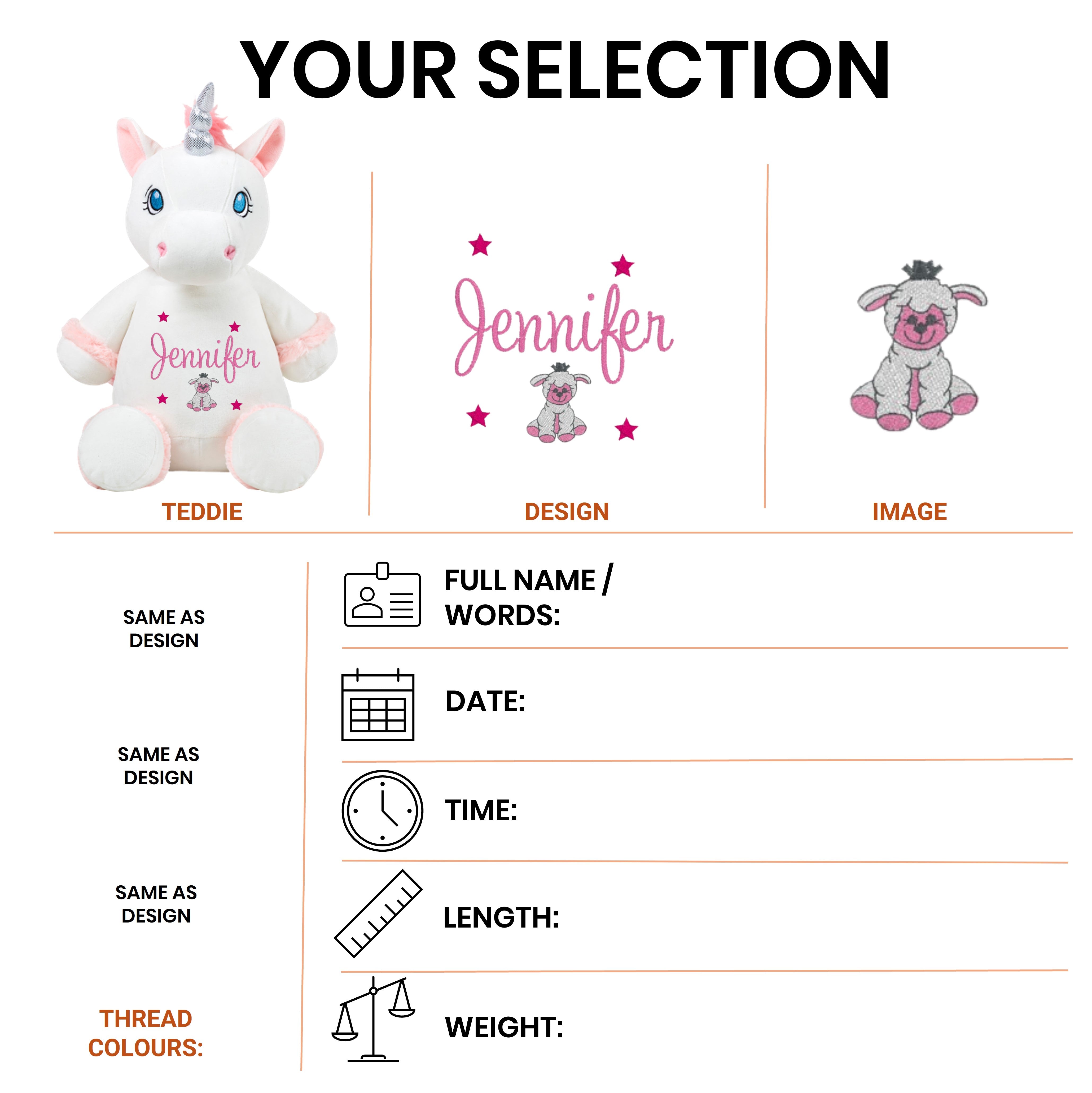 This custom bunny teddy bear is embroidered with a fully personalised design, allowing you to create a unique keepsake cherished for life.